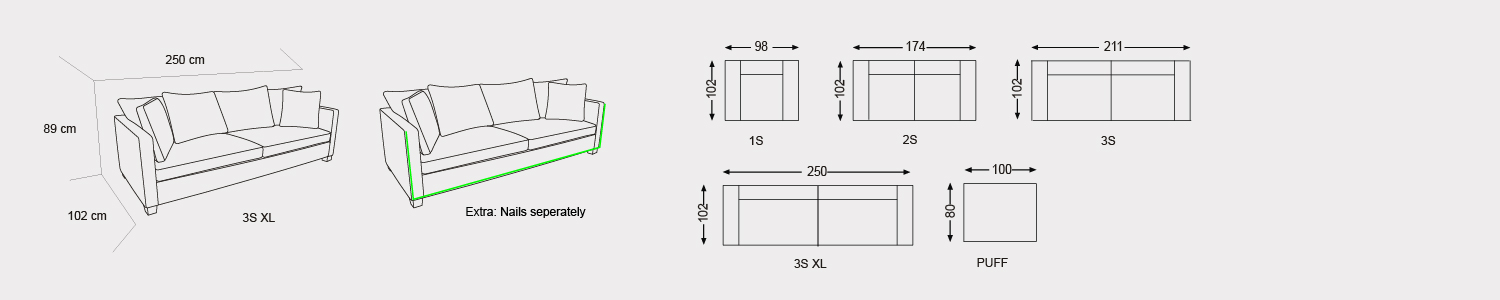 Happy består af en række moduler, som kan sammensættes. Her er der mulighed for at tilgå sofaen som lænestol med ét sæde og som 2-personers eller 3-personers sofa. Ved sidstnævnte 3-personers sofa tilbyder vi også en unik løsning i form af en XL-udgave. Det betyder, at vi har forlænget sofaen med 39 cm, hvilket giver Happy en længde på 250 cm. Der er med andre ord nok plads til at flade ud.